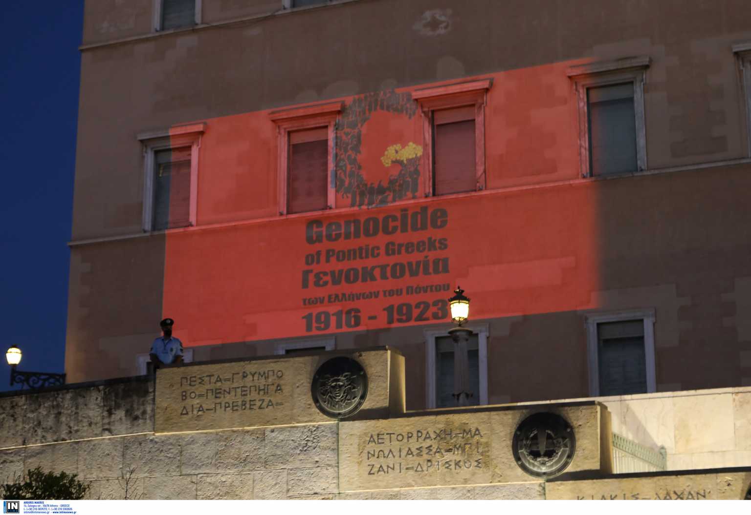 Η Βουλή φωταγώγησε απόψε την πρόσοψη του κτηρίου της με το συμβολικό λογότυπο-μήνυμα για την Ημέρα Μνήμης της Γενοκτονίας των Ελλήνων του Πόντου.